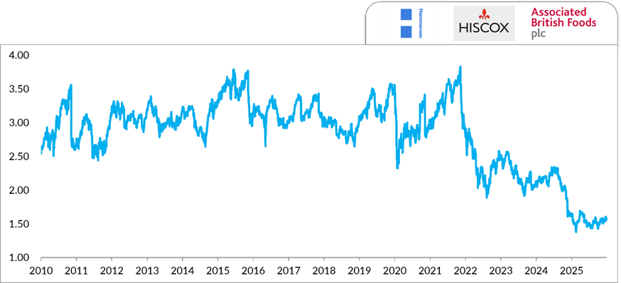 - Associated British Food (ABF), which owns the excellent value retailer Primark and has interests in various sugar and grocery businesses. We believe earnings are low and the starting P/E valuation is on an undemanding 11x, a significant discount to its long-run average.
